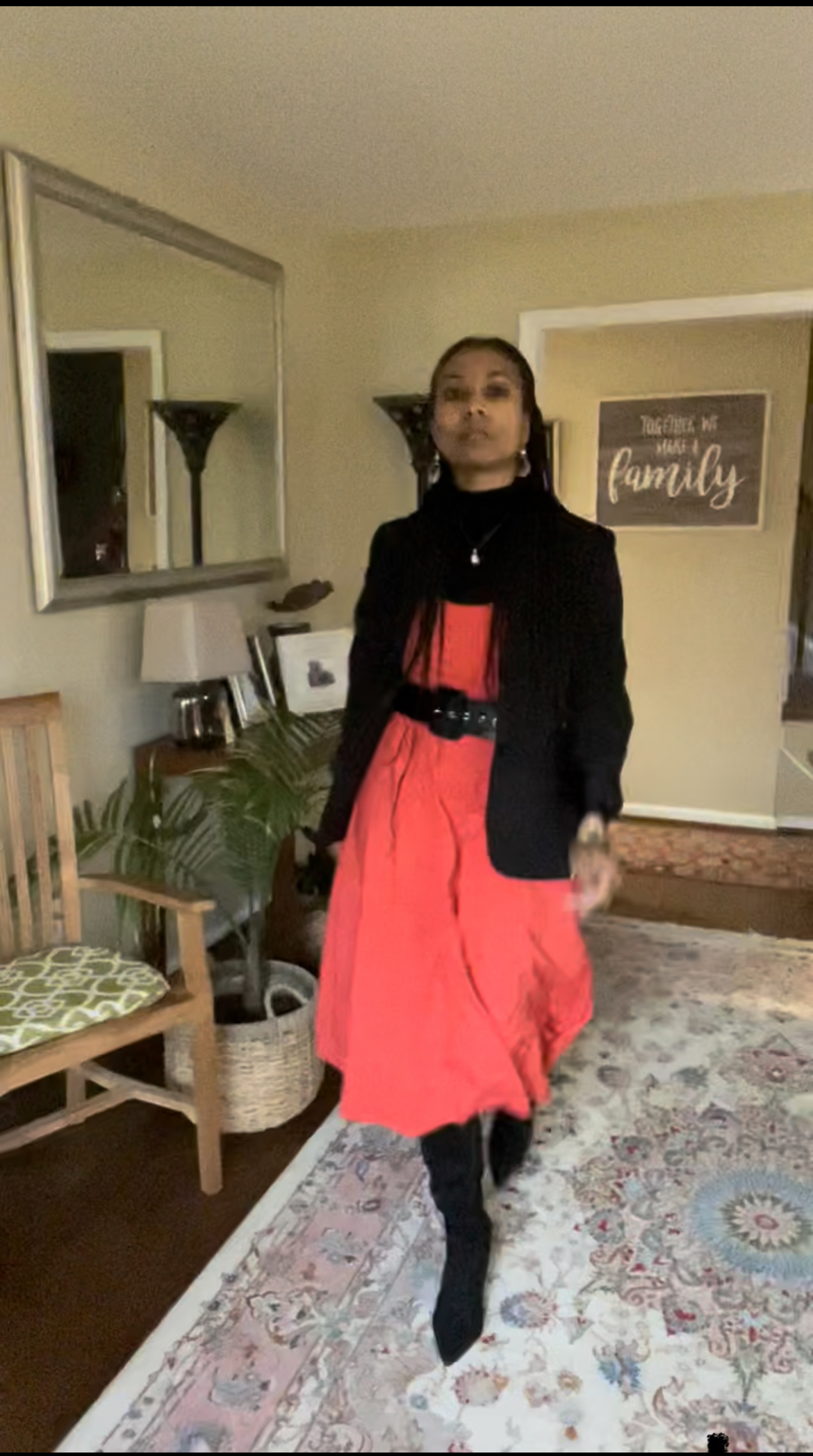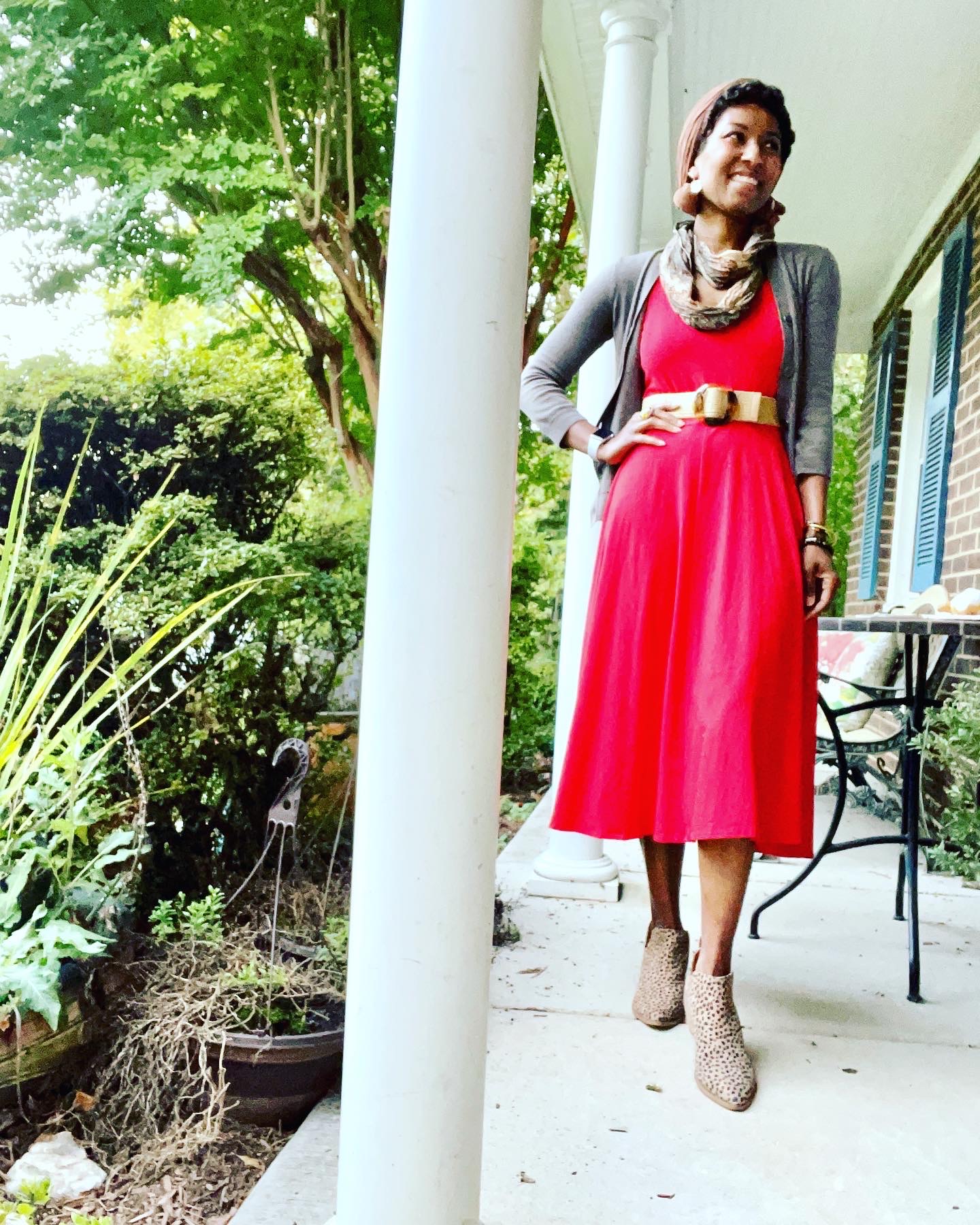 I found this red summer dress at Target and have been able to wear it in all seasons. Just add layers.